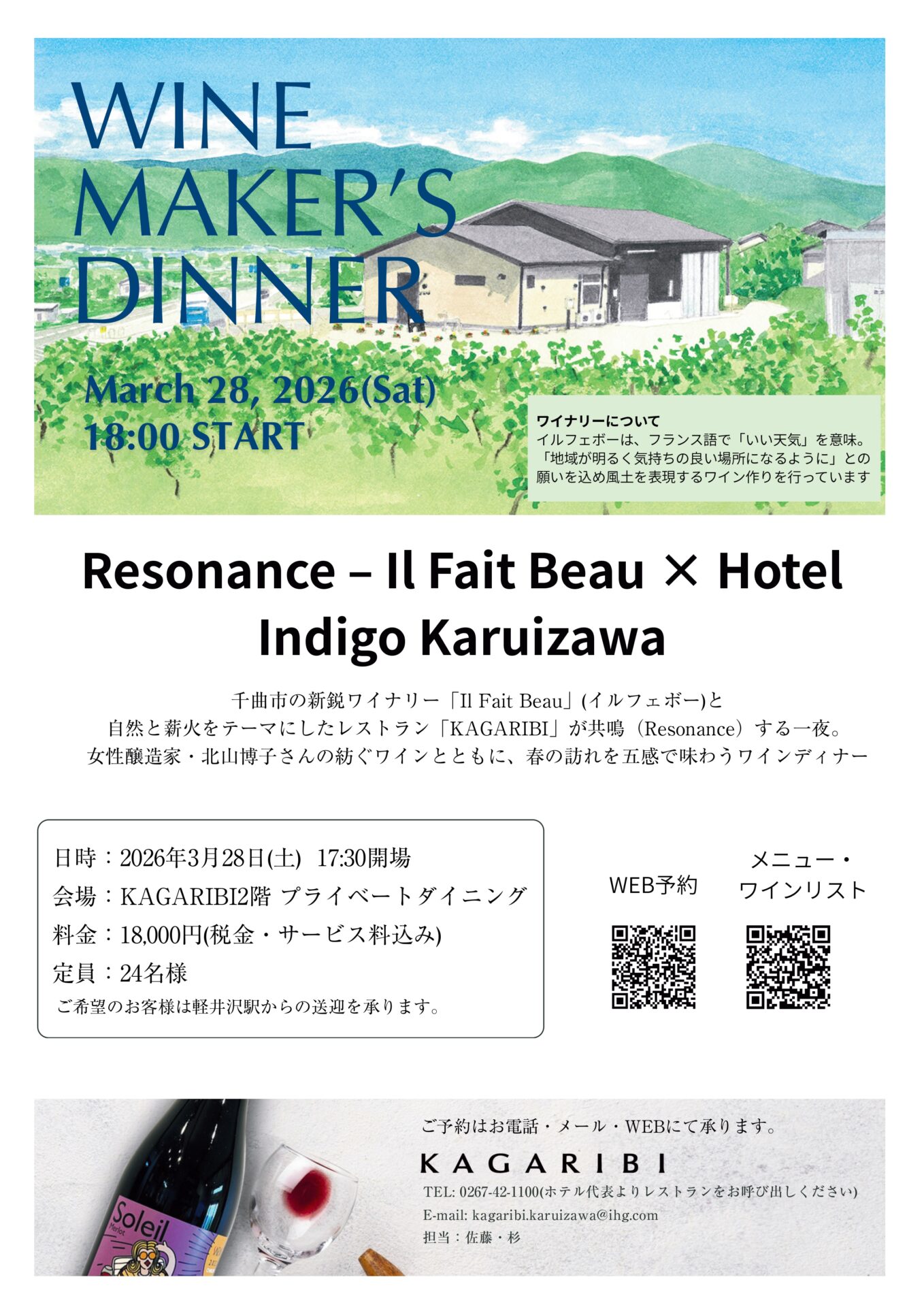 2026年最初の「 WINE MAKER’S DINNER」は、2022年にオープンした千曲市初のワイナリー「イルフェボー(Il Fait Beau)」とのコラボレーション。