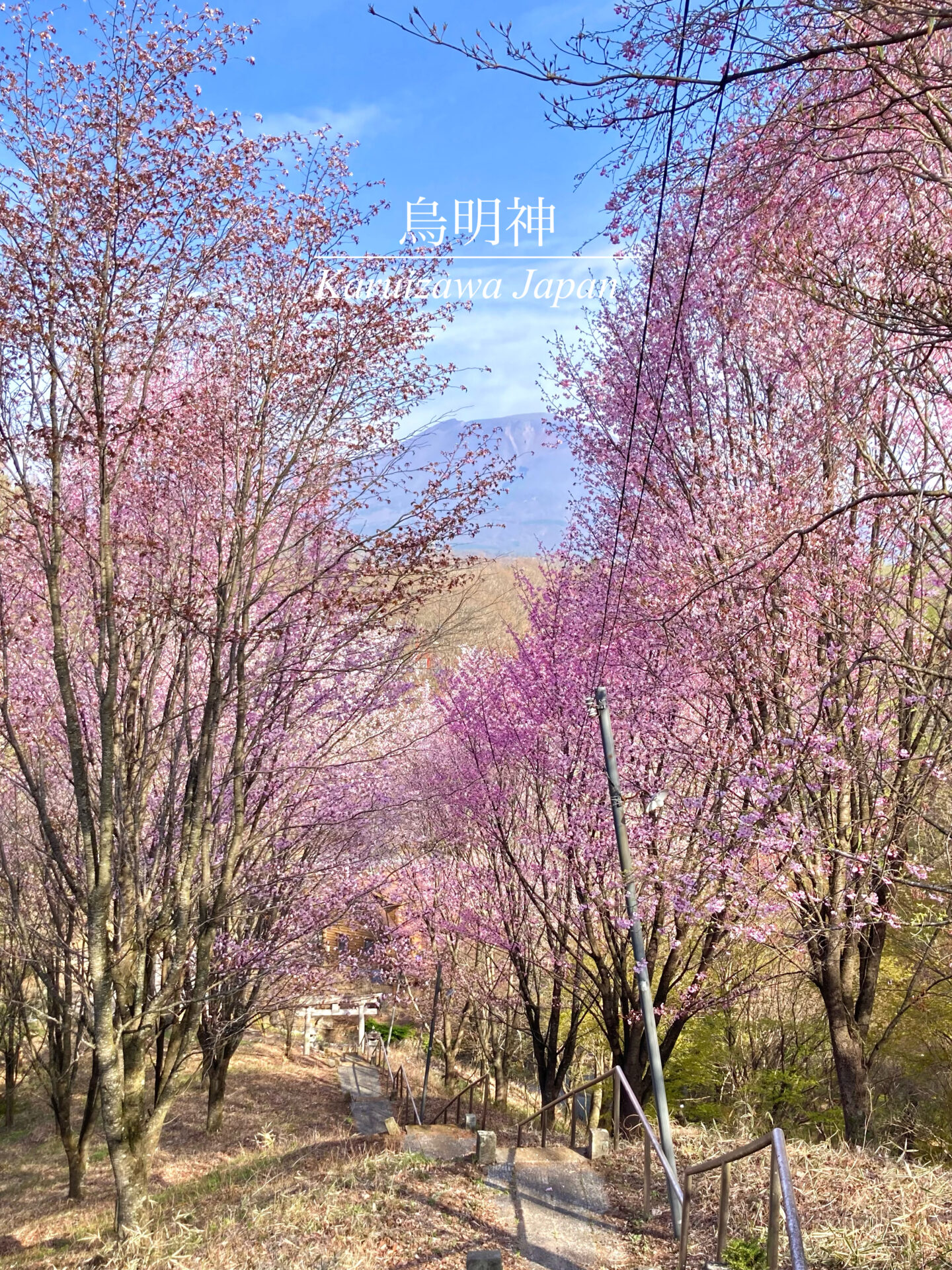 参道の桜と浅間山です。