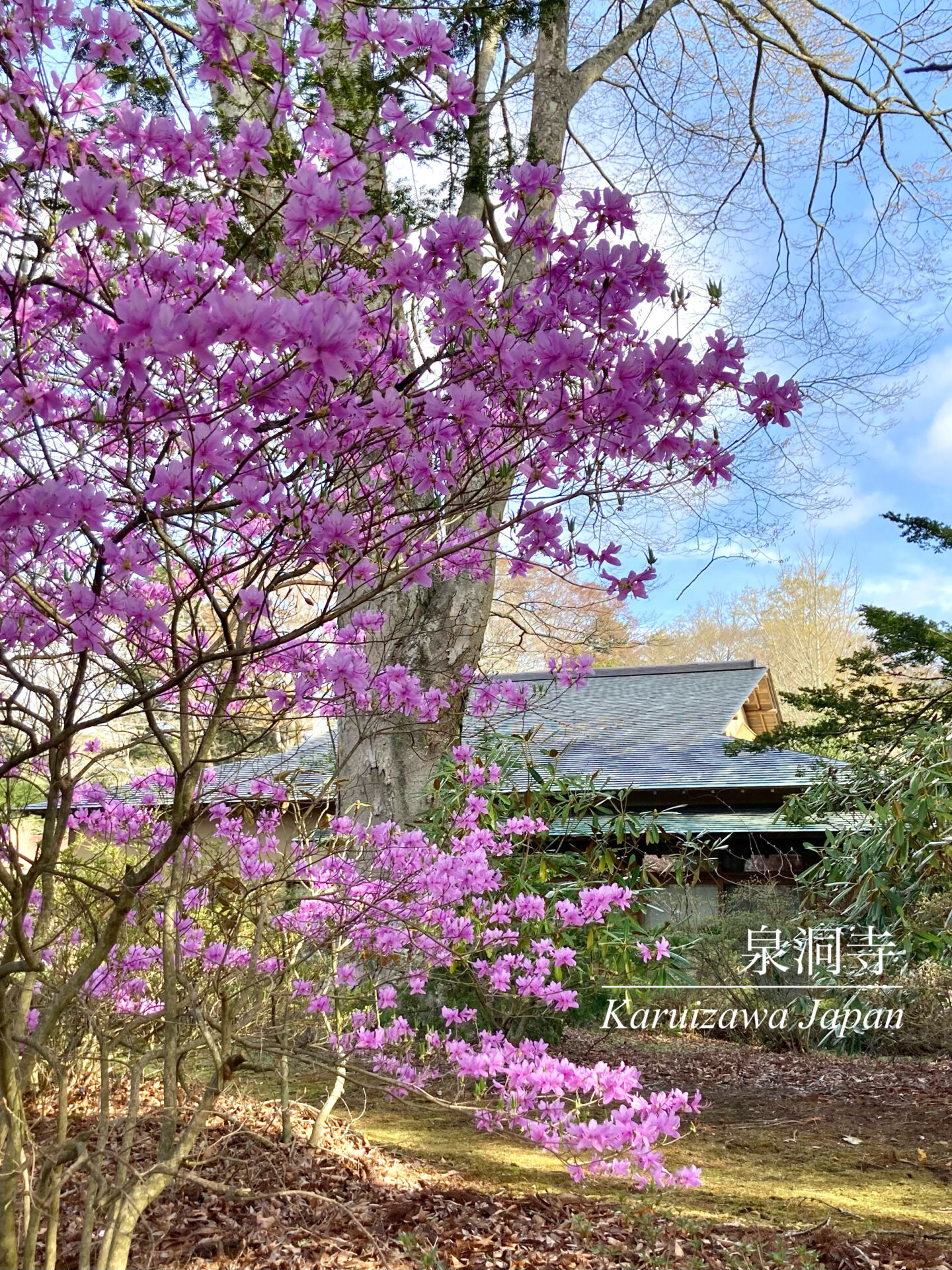追分宿 泉洞寺のミツバツツジ 2026.04.26 中山道四季の風景文学花 【追分宿 泉洞寺のミツバツツジ】 新緑前の 野山を行けば、 春を言祝(ことほ)ぐ コブシと ツツジ。 ー 4月26日午前8時、 気温は9.1℃、晴れ。 画像は 堀辰雄の散歩道、 中山道追分宿 泉洞寺のミツバツツジです。 ミツバツツジは、 新緑前の春の山で 真っ先に咲くツツジ。 泉洞寺でも、 木陰でひっそりと 咲いていました。 その脇にある、 駐車場の枝垂桜は 満開でした。 撮影日20260425
